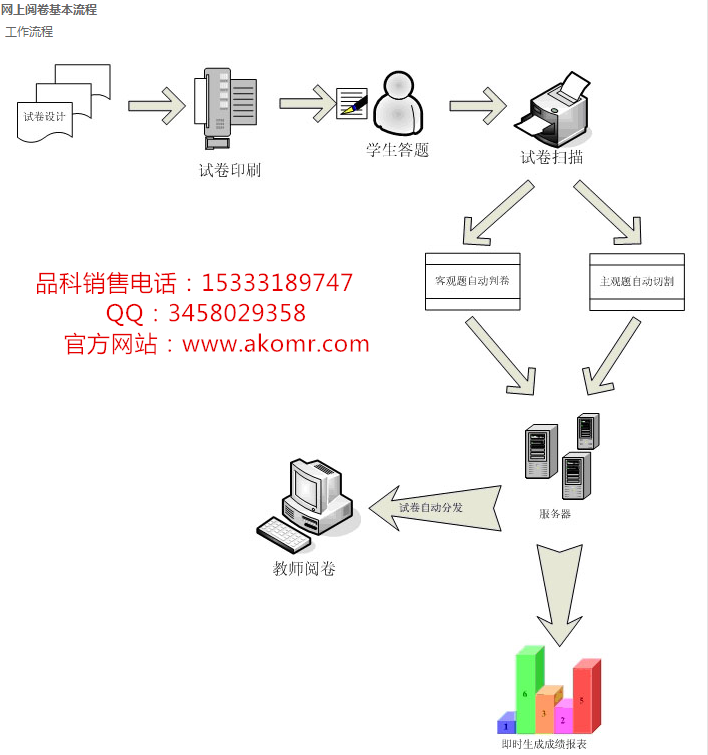 品科網上閱卷系統將中國傳統紙筆考試進行了電子化管理。它一次性解決了所有考務管理事務,包括答題卡智能設計、答題卡掃描、客觀題自動識別、主觀題網上閱卷以及自動生成題目分析和考試結果評價報告。實現了考試閱卷的電子信息化。品科網上閱卷系統是基于圖像處理、模式識別與人機交互工程等前沿技術而開發的大批量效率高率圖像處理系統,是 公司與中國科學院經過多年調研、開發、優化的新成果,廣泛應用于多種行業的考試、考核、評估、調查。特別針對初、高中學校的學生適應中考、高考現代化閱卷方式、學校實現現代化教學管理、提高教師工作效率推出了學校版品科網上閱卷系統,并根據其他行業需要開發了大型考試版(高考、成考、公務員考試等)、能力考核評估版、行風評議版、社會問題調查版、檔案管理等系統版本,另外還可以根據客戶需要進行定做。